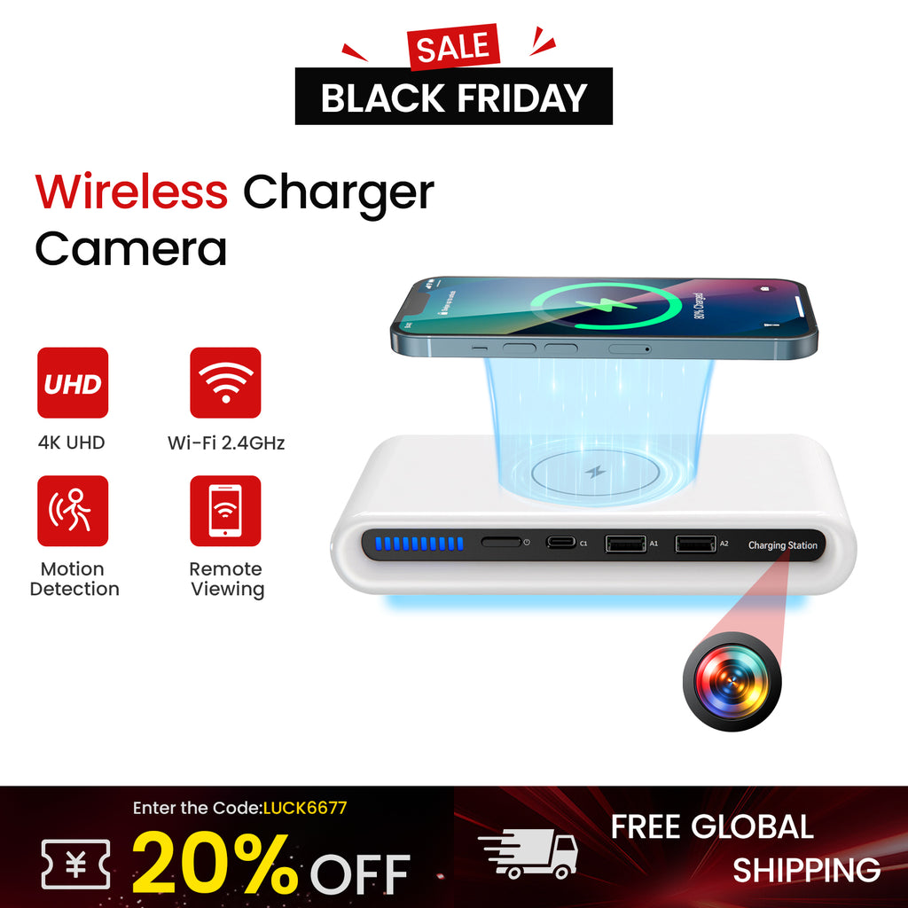 This 3-in-1 Wireless Charging USB Hub goes beyond being just a charger; it functions as a sophisticated hidden camera solution artfully disguised as a stylish desktop accessory. Equipped with a fully concealed 1080P WiFi spy camera, rapid USB and wireless charging features, ambient lighting, and built-in 64GB loop recording, it guarantees ongoing protection without drawing attention.