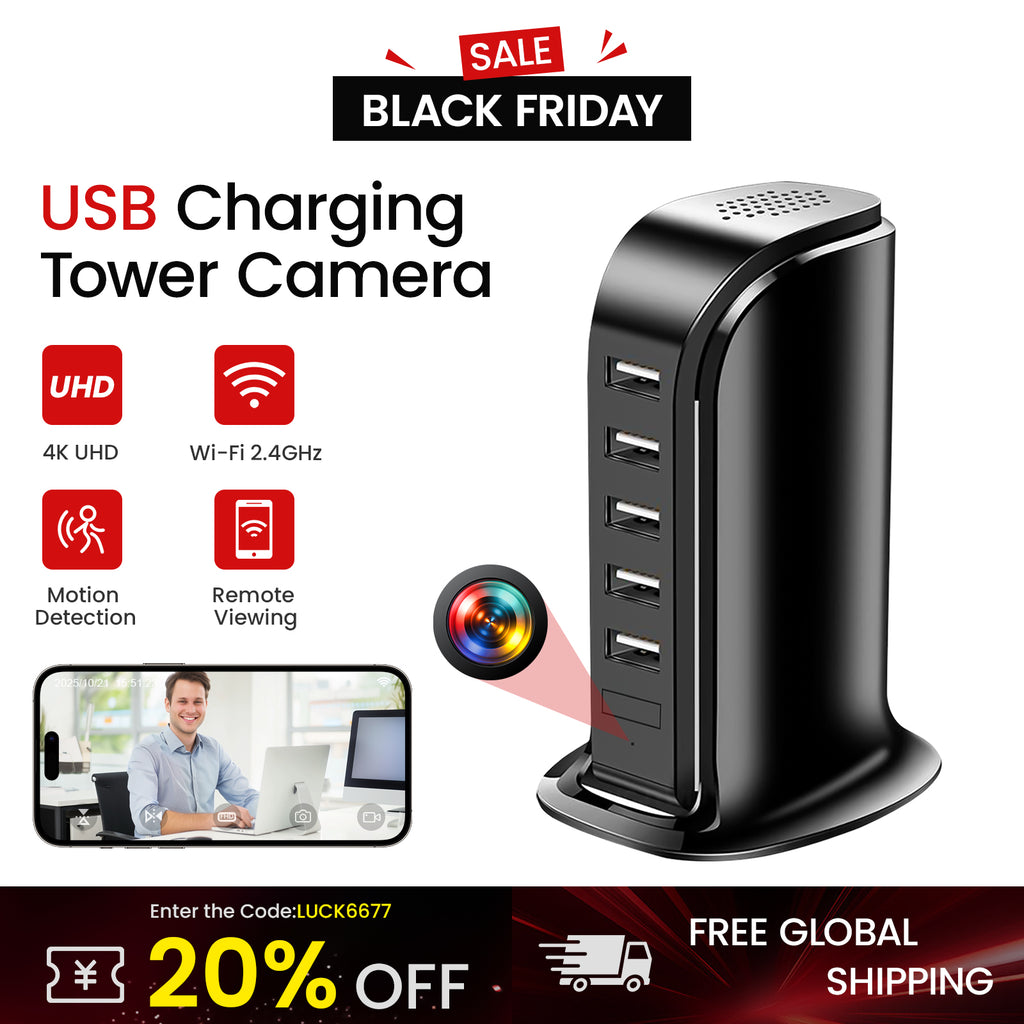 Functions as a 5-port rapid charger while hiding a pinhole 1080P camera—seamlessly integrates into any home or office environment.