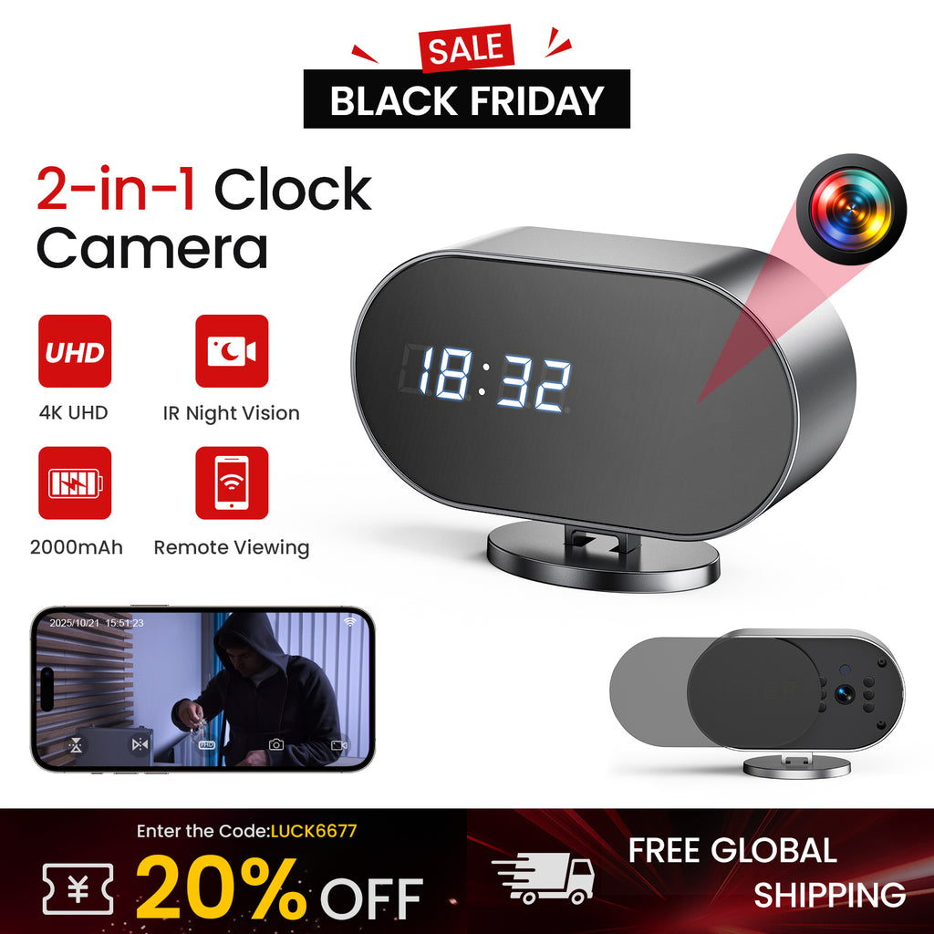 4K WiFi Clock Camera with Night Vision, Motion Detection & Remote Viewing