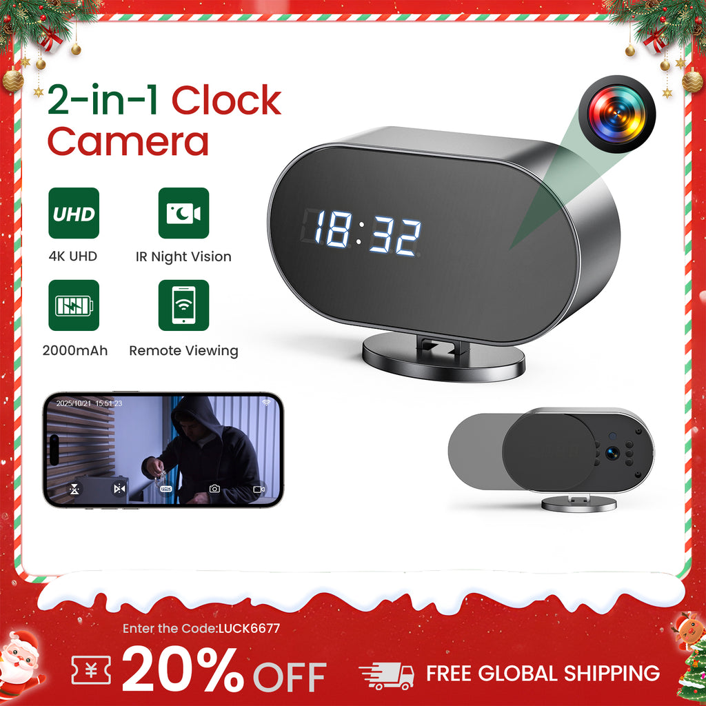4K WiFi Uhrenkamera mit Nachtsicht, Bewegungserkennung und Fernüberwachung