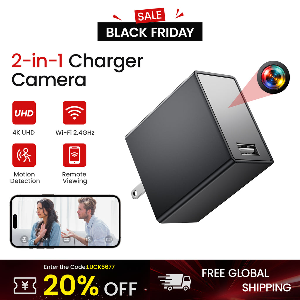 24/7 Non-Stop! 1080P Black Light Full-Color Night Vision Hidden Plug WiFi Camera & [64GB/128GB] Storage