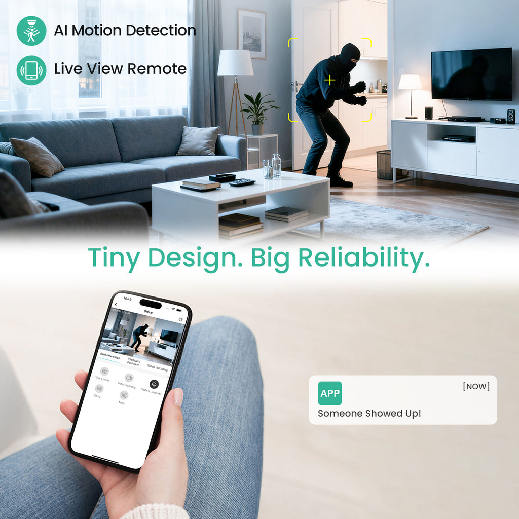 The integrated motion detection promptly activates real-time push notifications to your phone upon detecting any unusual movement—ensuring you never overlook a significant moment.