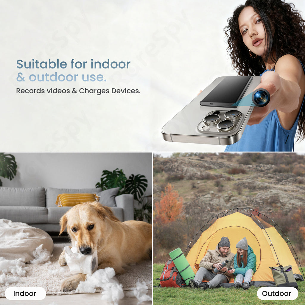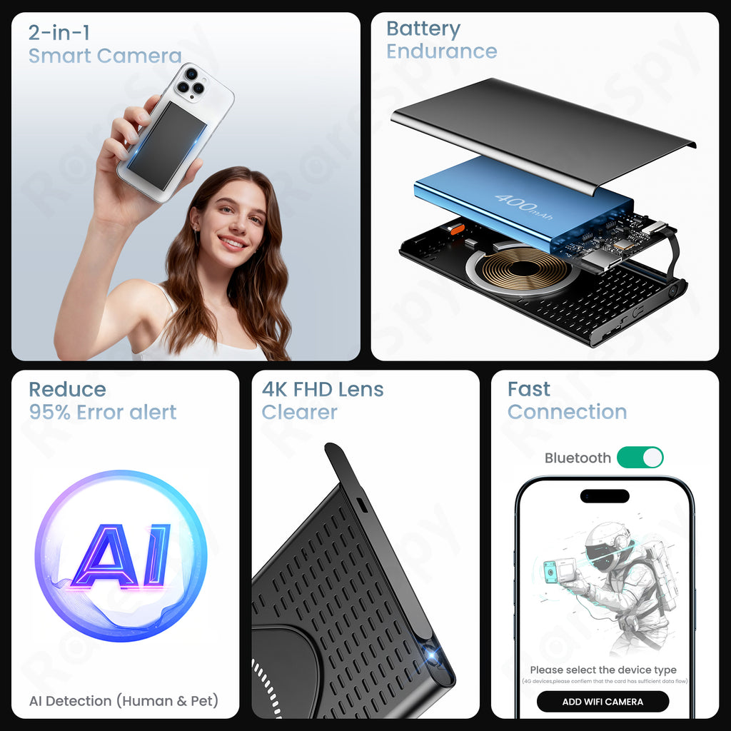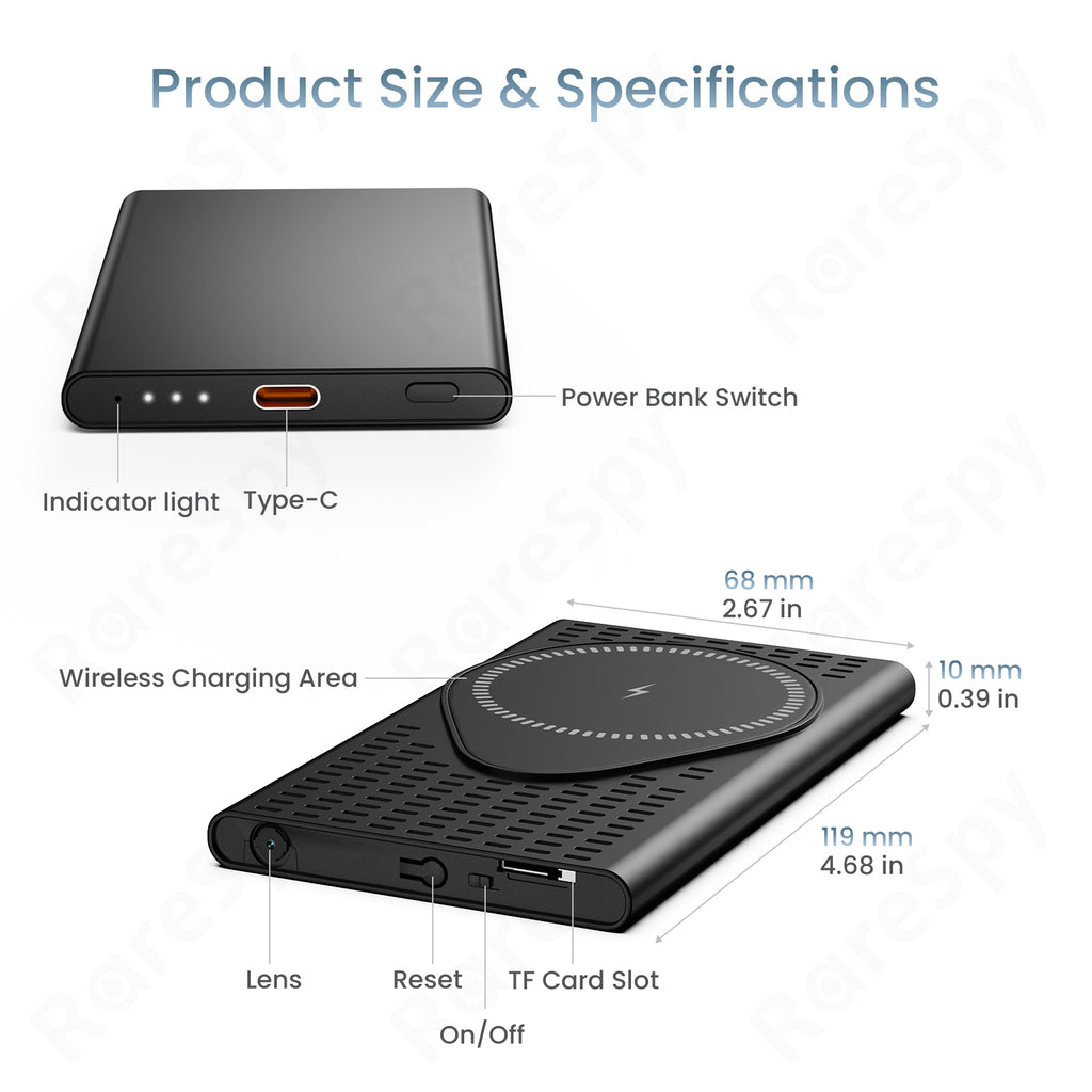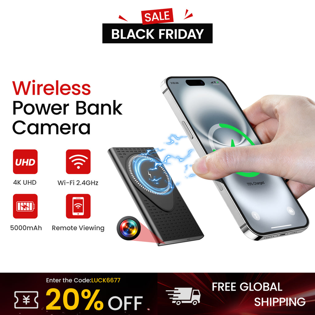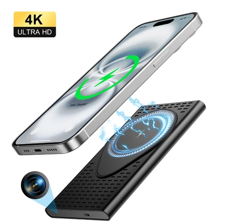 4K HD Spy Camera Power Bank with Wireless Charging & WiFi Remote View - AI Motion Detection for Pet/Nanny Monitoring