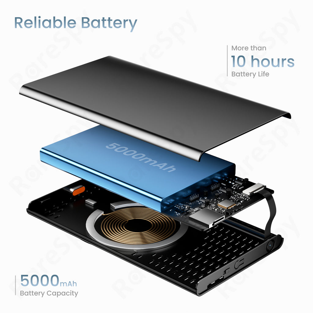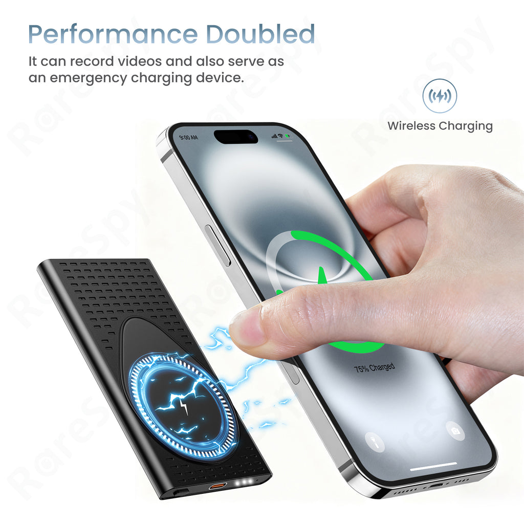 ⚡️ Powerful 2-in-1 Functionality: Acts as a 5000mAh high-capacity power bank with wireless charging and Type-C output, ensuring your phone stays charged while the camera records for over 10 hours continuously. Never worry about running out of power!