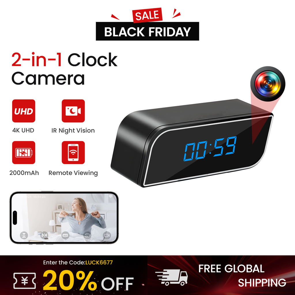 4K WiFi Clock Camera with IR Night Vision & 140° Wide-Angle Lens